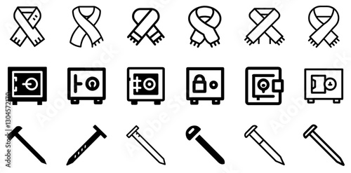 © MSTNAFIATABASSUM, Obraz premium "Scarf, Secure Safe, and Nail Icon Set – Fashion, Security, and Construction Vector Symbols"
