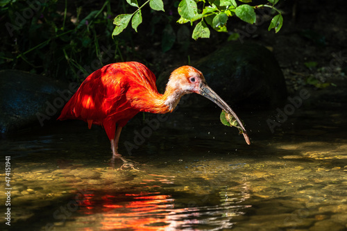 Naklejka premium Scarlet ibis, Eudocimus ruber. Wildlife animal in the zoo
