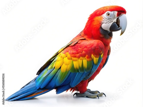 © Image World, Fototapeta premium Scarlet Macaw displaying vibrant plumage and striking details against a white backdrop