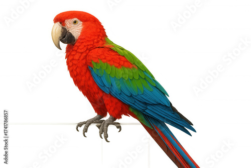 © Michael, Fototapeta premium Scarlet macaw parrot showcasing vibrant red, green, blue plumage, standing on transparent background