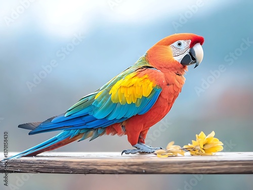 © gingsulku, Fototapeta premium Scarlet Macaw Perched for Tropical Setting.