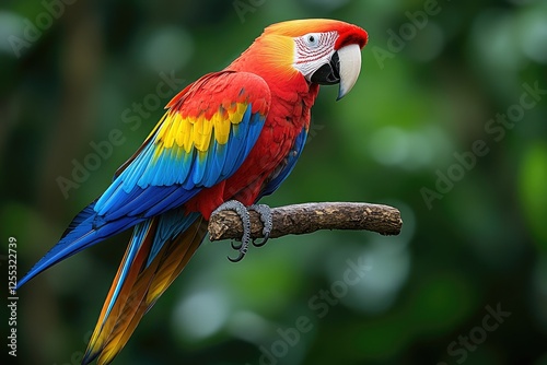 © boler, Obraz premium Scarlet Macaw Perched On A Branch In Lush Green Foliage