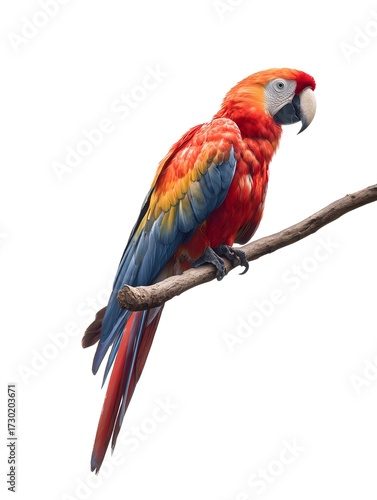 © Apinya, Fototapeta premium Scarlet Macaw Perched on Branch Vibrant Parrot in Profile