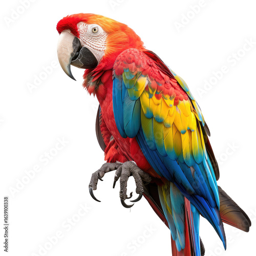 © Bcm, Fototapeta premium Scarlet Macaw perched, rainforest background, exotic bird profile, wildlife photography