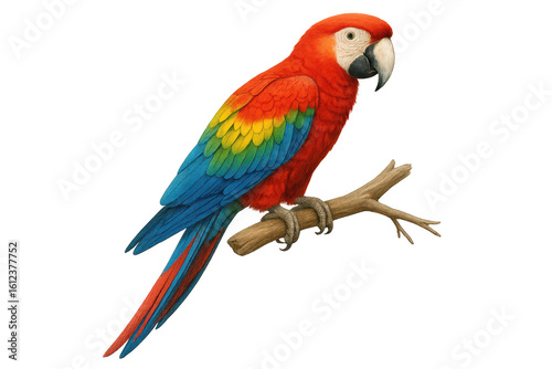 © Michael, Fototapeta premium Scarlet macaw perching on a branch with transparent background