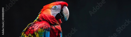 © TeteraX, Fototapeta premium Scarlet Macaw Profile Against Black Background
