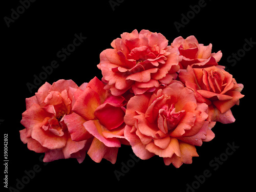 © alesikka, Naklejka premium Scarlet rose flowers arrangement isolated on black background