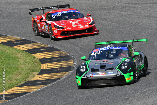 Fototapeta premium Scarperia, Italy - September 14th 2025: Porsche 911 GT3 Cup (992) of team...
