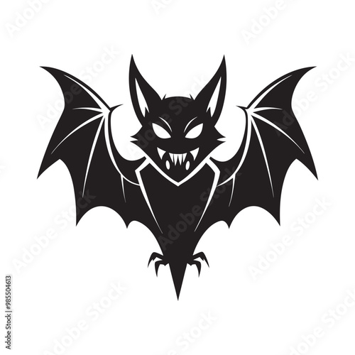 Obraz premium Scary Black Bat Vector Illustration for Halloween Design, Spooky Bat Illustration for Halloween Invitations and Posters