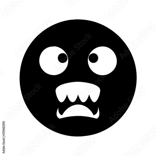 © Olga, Fototapeta premium Scary black face with wide eyes and fangs