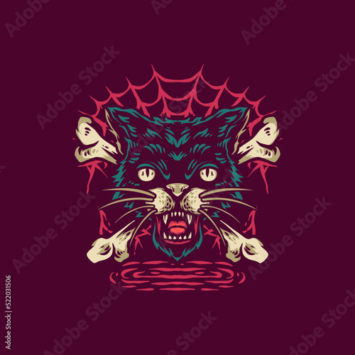 © STR Graphs, Fototapeta premium Scary Cat Retro Illustration