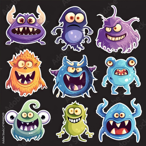 © Lila Patel, Fototapeta premium Scary Creepy Monsters Sticker Collection. Multiple. Vector Icon Illustration. Icon Concept Isolated Premium Vector.