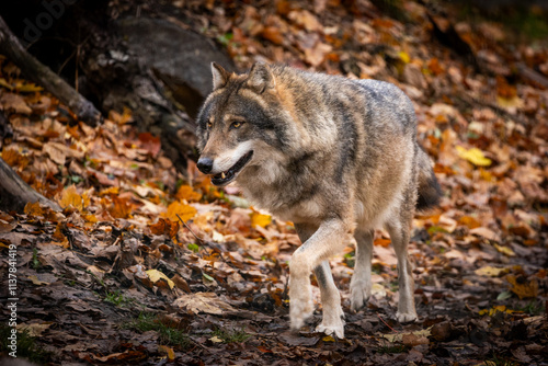 Fototapeta premium Scary dark gray wolf (Canis lupus)