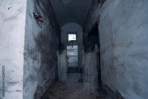 © erika8213, Obraz premium Scary ghost woman in haunted house with rope with a noose