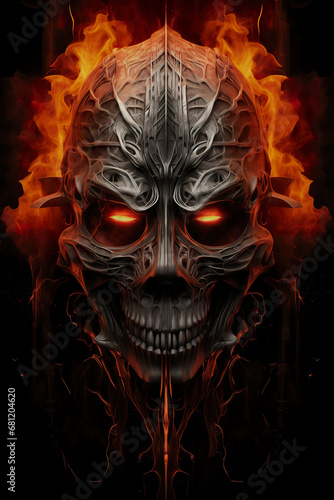 © Cheport, Naklejka premium Scary gothic mask and fiery backdrop