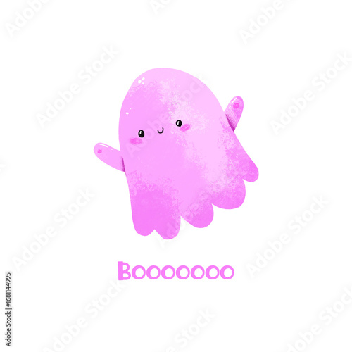 © Ilona, Naklejka premium Scary halloween card with ghost. Trick or treat. Autumn holiday, scary design