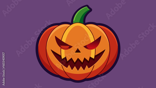 Fototapeta premium Scary halloween jack o lantern with glowing red eyes and jagged smile
