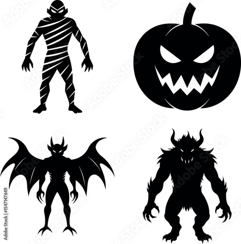 Fototapeta premium Scary Halloween Monsters Silhouette Vector Pack