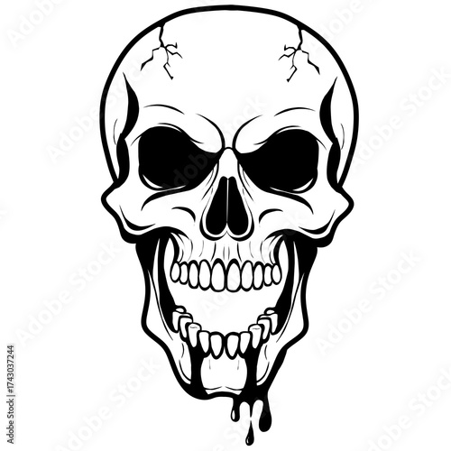 © Shysiness, Fototapeta premium Scary Halloween Skull with Dripping Blood