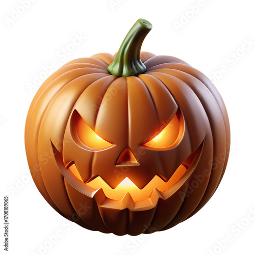 © Salma, Fototapeta premium Scary jackolantern with glowing eyes and mouth isolated on transparent background