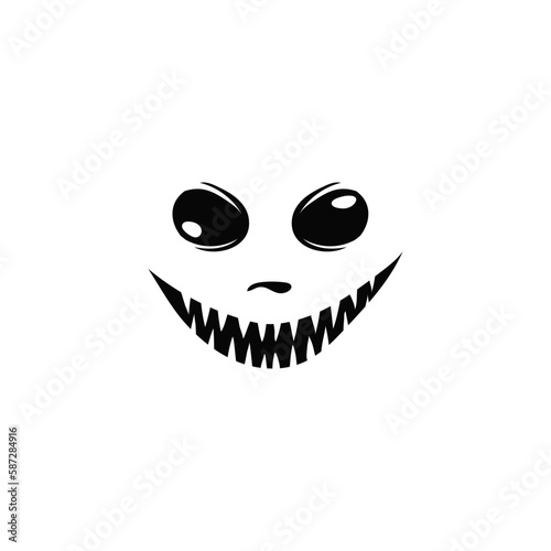 © Богдан Скрипник, Fototapeta premium Scary laughing face with big teeth. Black ghost mouth for halloween as devilish decoration and emotional expression of vector evil
