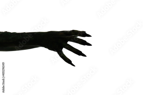 © New Africa, Fototapeta premium Scary monster on white background, closeup of hand. Halloween character