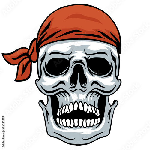 © Raphaello Studio , Fototapeta premium Scary skull head illustration wearing red bandana hand drawn vintage style