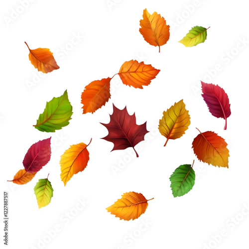 Fototapeta premium Scattered autumn leaves in vibrant colors on transparent background