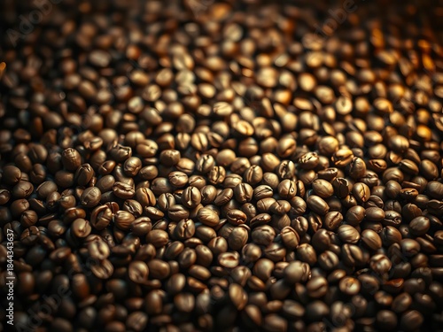 © Chavanlak, Obraz premium Scattered coffee beans, a constellation of roasted earth tones, suspended in vintage bokeh , faded, bokeh