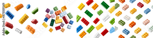 Obraz premium Scattered Colorful Building Blocks Isolated on White Background