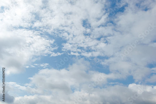 Fototapeta premium Scattered cumulus clouds drifting across a partly cloudy sky with visible...