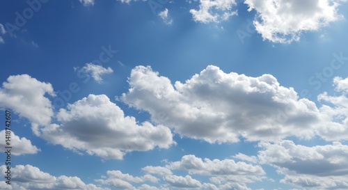 © Riocool, Fototapeta premium Scattered Cumulus Clouds in Bright Blue Sky on a Clear Day