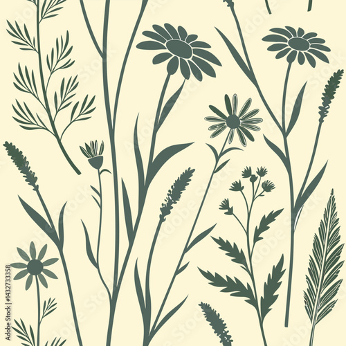 © SABER, Naklejka premium Scattered Hand-Drawn Wildflower Bouquet Design