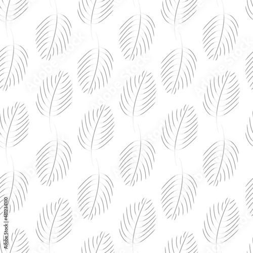 Obraz premium Scattered leaves mono style seamless pattern, simple lino style foliage,...