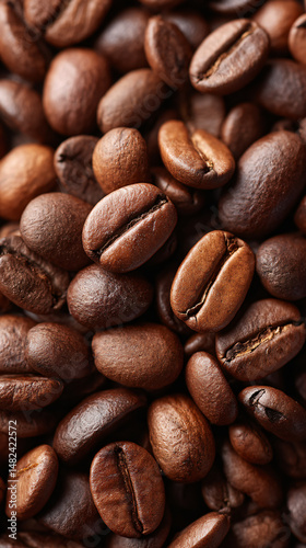 Obraz premium Scattered Roasted Coffee Beans on Textured Surface