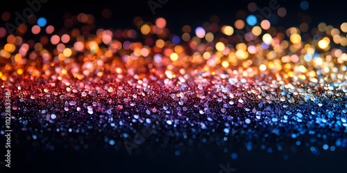 © Maryna, Obraz premium Scattered sequins on a black background create an abstraction of a starry night sky with countless sparkling dots.