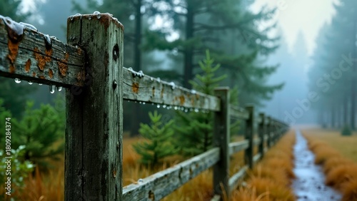 © er, Fototapeta premium Scene based presentation of ink painting forest railing art