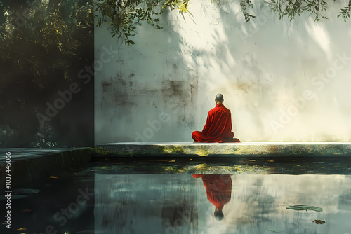 Obraz premium scene featuring a monk in deep meditation, sitting cross-legged in a calm and...