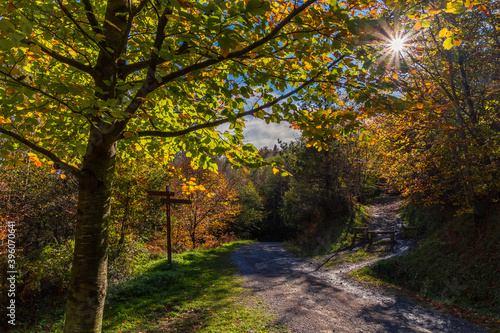 © AcasPhotography, Fototapeta premium Scene of a backlighting in fall, in Natural Park of Urkiola