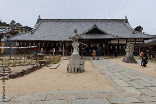 Fototapeta premium A scene of Itsukushima-benzaiten Shrine on Miya-jima Island in Amagaichi City...