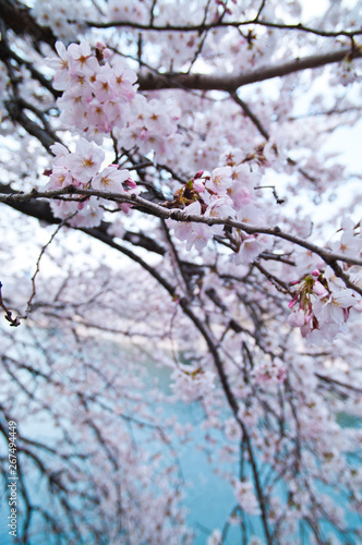 © www555www, Obraz premium Scenery of cherry blossoms in full bloom around Osaka Castle.