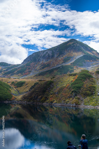 © Masakazu Tokashiki, Fototapeta premium 富山県立山町の立山の秋の紅葉の季節に登山している風景 Scenery of climbing Tateyama Mountain in Tateyama Town, Toyama Prefecture, Japan during the season of autumn leaves.