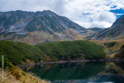 © Masakazu Tokashiki, Fototapeta premium 富山県立山町の立山の秋の紅葉の季節に登山している風景 Scenery of climbing Tateyama Mountain in Tateyama Town, Toyama Prefecture, Japan during the season of autumn leaves.