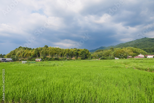 Obraz premium Scenery of rice paddies in midsummer