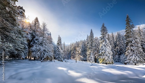 © Enrique, Fototapeta premium scenery of winter snow pine forest landscape ai generative
