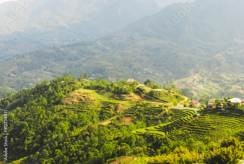 Fototapeta premium Scenery of Y Linh Ho valley with rice terraces surrounded with mountains by...