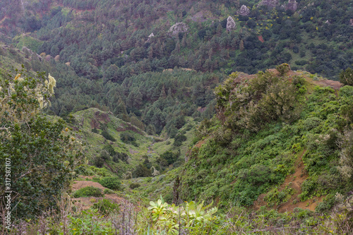 © zhenya popova, Fototapeta premium Scenery valley in Spain.Nature landscape. Cactus,vegetation and sunset panorama in Tenerife