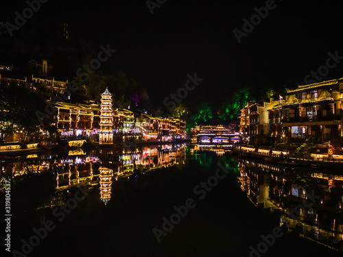 Fototapeta premium Scenery view in the night of fenghuang old town .phoenix ancient town or...