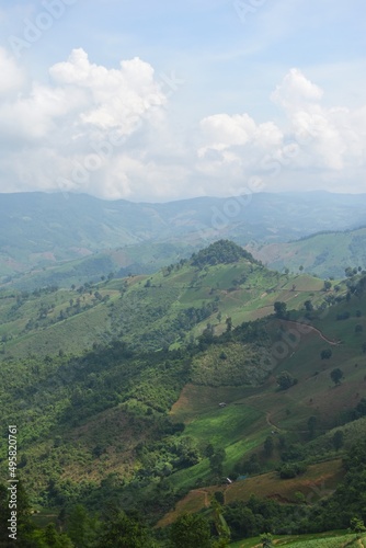 Fototapeta premium Scenery view of mountain range and cloud from Doi Sakat, Pua District, Nan Province, THAILAND.