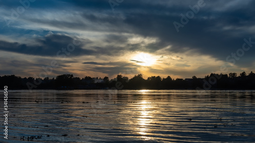 © Andrey Nikitin, Naklejka premium Scenery with river in the background light of the twilight sky